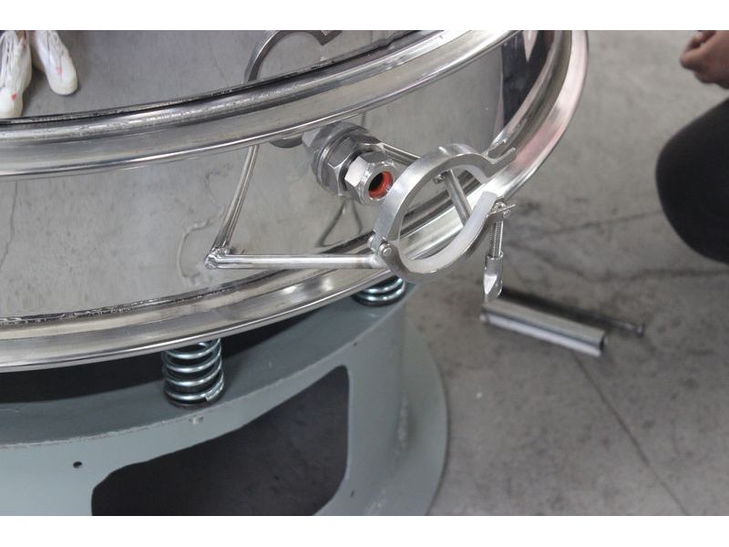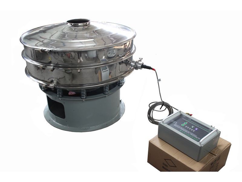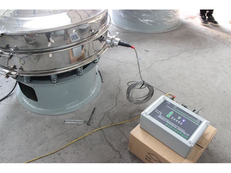 4、運行三次元振動篩分過濾機(旋振篩),稍微投點料并且微調(diào)超聲波發(fā)生器電源上微調(diào)旋扭,使篩網(wǎng)到達一個理想狀況。(電流應小于200mA)