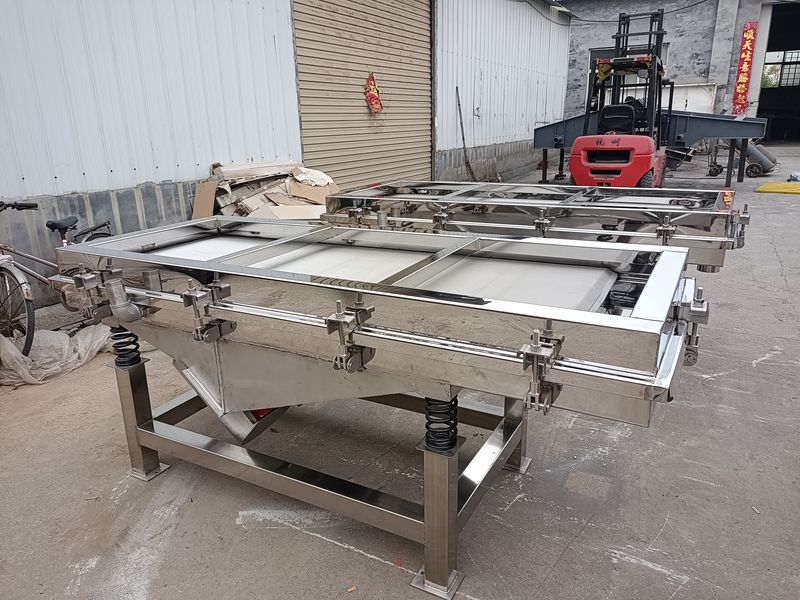 多層粉料直線振動篩為雙振動電機驅動,利用振動電機激振的原理工作。當兩臺電機作同步、反向旋轉時,其偏心塊所產生的振動力在平行于電機軸線的方向相互抵消,在振動力和物料自重力的聯(lián)合作用下,使物料在篩面上被拋起跳躍式向前作直線運動,以合理匹配篩網達到篩分的目的。